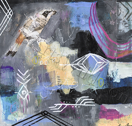 Peinture « Abstrait à l'Oiseau #3 » – SheArtsWild