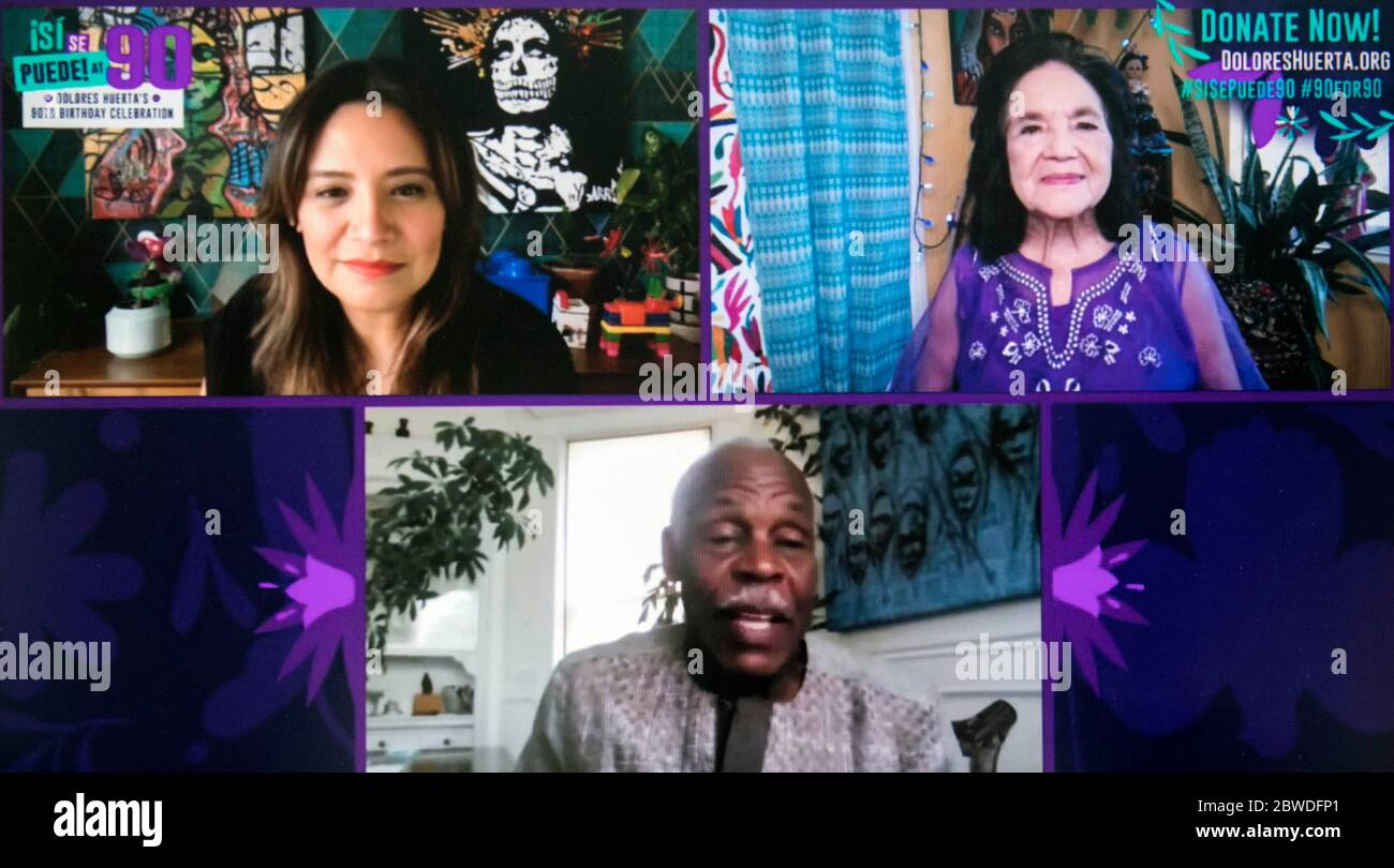 Bakersfield California Usa 31st May 2020 Dolores Huerta Who Spent Her Life Fighting For Civil Rights And Social Justice Is Feted On Her 90th Birthday By Scores Of Friends Including George Lopez